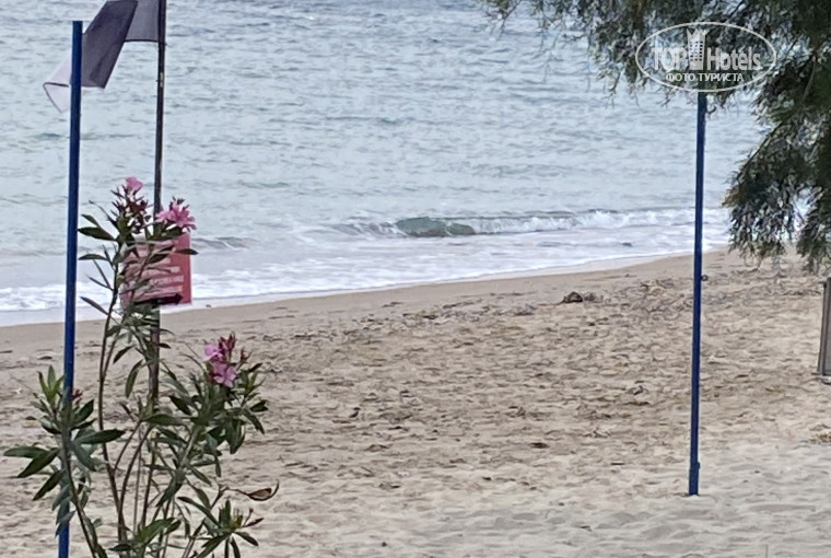 Пляж: убирают с утра до вечера, песок с лежаков щёткой сметают, столики протирают, есть спасательная служба, кабинки для переодевания и душ с обеих сторон пляжа, зонтики большие, вход в море удобный ( кораллки не нужны)- 2 м до глубины, есть мостик и лестница для удобного входа. Слева от пляжа- водный спорт, справа- парусный спорт.