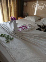Находились в отеле с 12 по 23 мая, прилетели в аэропорт Антальи в 15 часов, до отеля ехали 2,5 часа с заездом в Белек высаживали 2х человек( я не первый раз в Сиде и ехать там 1 час максимум 1,5 час,туроператору Килит Глобал нпдо пересмотреть свою логистику и забрали назад за 5 часов до вылета, это очень много и утомительно). В отель мы прибыли в 18.30,заселили сразу , номер небольшой но все есть и все работало. Напротив номера на стене висит большой ящик с кучей проводов, который очень шумит, первую ночь плохо спала слышала его, как он работает. Попросила поменять номер ответили 20 евро, но потом море сделало своё дело ,перестала замечать этот шум. Отель чисто немецкий, все заточено на них, русских просто терпят, каждый приём пищи начинался с поиска салфеток, ножей и вилок, стряхивание скатерти , но вот у немцев все всегда было, еда для 4 звёзд не очень, завтрак яйца, обед ужин курица из горячего, в плане питания отель разочаровал, но голодными не были. Были люди которые приезжают туда 5 раз и тоже разочарованы, никогда такого не было. Анимация никакая, детская 15 минут, взрослая тоже пародия. Дискотека играет немецкая музыка танцуют немцы, играет русская музыка танцуют русские, такого разделения я негде не видела. Сам отель зелёный, красивый. Море вход галька, лучше брать тапки, два шага и глубоко. Бар на пляже работает и как всегда немцам наливают в стекло, а русским в бумажный стакан. Вернусь ли я в этот отель, однозначно нет. Постаралась описать спокойно, хотя там эмоции зашкаливали.