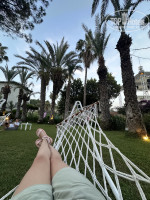 Красивая и большая территория, чистый ,песчаный пляж, очень вкусные и разнообразные коктейли, бар рядом с морем. Там же можно и пообедать.