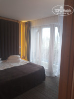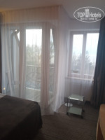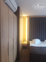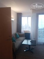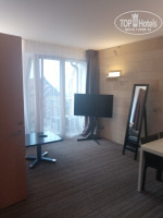 Очереди в отеле не было как и в прошлом году, оформление заняло 5 минут. Арендованную машину припарковал на цокольном этаже в гараже, от куда есть лифт (-1 этаж). Очень удобно. Парковка для поселенцев входит в стоимость. Отель 4-ех этажный с лифтом. Наш номер на 3-ем этаже. Номер нам достался несколько больше, нежели в прошлом году, и класс у него повыше, с вполне уютными комнатами. Из каждой выход на минилоджию, где уместилось только одно кресло и министолик с пепельницей для курящих. В полу-люксе был один балкон, но большой. В обеих комнатах современные ЖК телевизоры, с большим количеством разнообразных разъемов. Большая ванная комната, в которой не оказалось биде. Ванна размером поменьше, нежели в полулюксе, кабинка, унитаз, раковина. Полный набор мыльно-рыльных принадлежностей. Кровать большая, двуспальная, с не очень комфортным матрасом, ну тут на любителя, совсем мягкий мне не нравится. Выключатель у изголовья в комнате такой же - мега неудобный, и надписи на нем плохо видны без очков. Включение и выключение света в номере - квест, с криками... :"Э! Куда свет пропал?", "Ну кто светом балуется?", "Кто такой умный, что выключил свет?", "Не трогай эти ... кнопки!", "А давайте вызовем специально обученного человека?!"