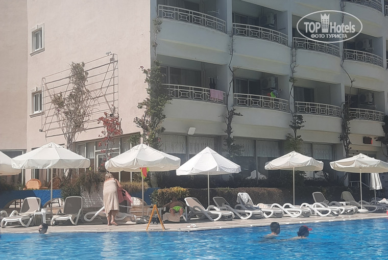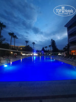 Бассейн. Большой, глубина 1.40 и 1.60, водичка теплая, шезлонги были часто заняты, но мы всегда находили место, есть детский бассейн, мелкий. В другой стороне отеля, где бассейн с горками мы так и не ходили, но с виду, там тоже прикольно)) Стоит большая сцена, но как поняли, она не используется, а зря...