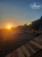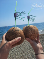 На пляже холодильник с водой, можно в любое время её взять, нам везло, вода всегда была, но люди говорили, что не всегда она есть утром, бар работает с 10 утра, есть пиво, кола, фанта, спрайт, вода, чай. На пляже наливают пиво ВСЕМ в бумажные стаканы, а не только русским! Никого на пляже не видели со стеклом, не вводите людей в заблуждение по поводу разделения!!!Лепёшки гёзлеме начинают печь с 11:30, начинки картошка, сыр с зеленью, шоколад, довольно неплохие, к ним всегда очередь)) Пообедать на пляже также можно, столов мало, но можно взять еду и обедать на шезлонге.