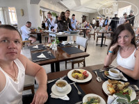 1. Сервис. Это, пожалуй, одна из самых сильных сторон этого отеля. Всегда учтивый, улыбчивый, чистенький и ухоженный (как женихи на свадьбу!) персонал отеля. При заезде на ресепшене вас встретят прохладным полотенцем и приветственным напитком. Браслеты одели сразу и отправили на обед (браслеты с нас в конце отдыха (в 12-00) не срезали и мы спокойно после выселения еще в течении часа пользовались всем all-inclusive). Оформили быстро, уточнив какие номера мы хотим. За все пребывание ни разу от персонала не было даже намека на чаевые. Официанты всегда и несмотря ни на что (жара, усталость, загруженность) улыбчивые и обходительные. Бармены веселые! Хочу отметить, что если вы встречаетесь с кем-то из персонала в дверях, то независимо от ранга, они всегда учтиво придерживают Вам дверь. Чувствуется работа старших менеджеров - персонал (и старший и младший) шуршит не останавливаясь. Раз в неделю директор организовывает фуршет-встречу с гостями отеля: представляет старших менеджеров и лично(!) общается с каждым гостем. Кстати говоря, директор всегда в поле зрения, сам следит за порядком во всех направлениях: сервис, чистота, кухня и т.д.