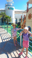 это отдельная любовь детей Есть также большая территория, которая называется Санторини, где дети могут погулять, полюбоваться водопадами, в озере водятся рыбки и плавают красивые лебеди.
