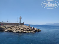 До моря надо идти минут 10-15. Мы не обращали внимание, что идти надо рядом с кладбищем. Просто высокий забор, да и всё. Пляж хороший, чистый, галька правда крупная. Но есть вход по настилу с поручнями. Справа от отельного пляжа ничего нет, море чистое, пляж пустой, можно плавать без ограничений. Водятся рыбки маленькие разноцветные и побольше, плавают большими стаями. Если возьмёте маску для плавания, не пожалеете. Можно часами плавать и наблюдать за морскмми обитателями. Если повезёт, увидите небольших черепашек, крабов, ну а рыбок много разных. Интересные большие синие обитают около металлических конструкций, справа от отельного пляжа.