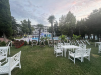 Классный семейный отель, чудесная территория( много хвойных, есть водопадик, зоопарк, природа, запахи, звуки, все располагает к отдыху. Питание отличное, порой необычное( подают микро зелень, зелень, семечки разнообразные), все вкусно, есть еще промежуточное и на пляже. Номер у нас был однокомнатный, но даже для 5х места было достаточно, было все необходимое. Для деток целый сладкий уголок, со множеством вкусняшек, конфет, многое ручной работы. Замечательный бассейн, выдают круги, очки, и на пляже тоже. Для детей рай, батуты, велики, зоопарк, анимация. Детский сад и лагерь, класс. По вечерам есть отдых на любой вкус, кино, игры, музыканты. Была игра музыкальная, играли в покер и мафию. Есть приложение, в котором удобно смотреть расписание активностей на каждый день. На пляж возит электрокар, каждые 15 минут, и обратно, тоже развлечение, не устаешь, пока дойдешь. На пляже лежаки, полотенца, для детей большая песочница и детская площадка, ресторан, в котором классно покушать с видом на море. Меньше, чем на неделю, приезжать не стоит)) не успеете все опробовать!! Советую и рекомендую!! Есть система лояльности для повторного посещения( в несезон можно приехать в тот же номер, но то же количество ночей по цене питания) такое впервые встречаю.