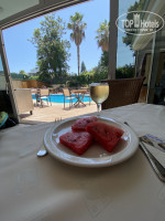 Заселение. В отель приехали в районе 6 утра. На рецепции сразу сказали заселение не раньше 12 часов дня. Можно оставить чемодан у лифта, что мы и сделали. В итоге заселились в 12, у нас был оплачен эконом, я думала в основном корпусе, но нас поселили в гардене, на первый этаж. Номер очень маленький, там буквально негде развернуться и в прямом смысле открыть полностью чемодан было негде абсолютно реально. Но самое главное нет никакого балкона или просто пространства по типу балкона, вещи сушить негде, в номере приспособ нет вообще никаких, но так как июль это жара бешеная, то и мокрые вещи не напрягало надевать, если ехать не в сезон, то это проблема. Так же этот номер с двуспальной кроватью, это очень неудобно, когда едешь с сыном 9 лет. Но кондиционер, душ рабочий, чисто. Можно было наверное быть понаглее и настаивать на смене номера, но я не стала. Доплачивать за номер на месте не хотелось совершенно. И номер смотрел не на дорогу, а во двор, что тоже плюс. От дороги шумно весьма. Так же были вопросы по холодильнику - мне кажется он не работал, ставили один раз воду, она как была теплой так и осталась. При заселении в холодильнике пару маленьких кол, пару соков и вода минеральная, всё это без доплат.