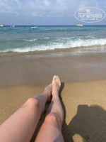 Пляж. Тут без претензий, пляж шикарный, мелкий песок, камней никаких, вход пологий. Идти 1 минуту по переходу. На лежаках хорошие плотные матрасы. Места на пляже есть всегда, конечно первую линию занимают умники своими дурацкими тряпками и уходят. Но даже при этом проблем с поиском лежака не было даже в такой горячий сезон как июль. Прогуливаясь по пляжной косе отметила, что пляж антика самый классный и по ширине и по инфраструктуре. Так же на пляже расположен бассейн с водными горками, сын туда ходил спокойно, пока я плескалась в море. Есть зона шезлонгов на зеленой траве, она платная. Бар на пляже тоже есть - пиво, вино, всякие б/а напитки, в обед еда.
