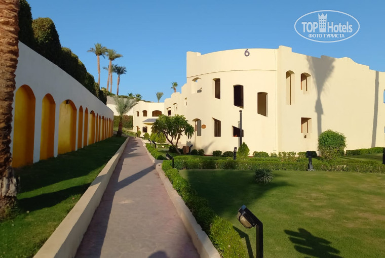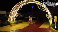 Территория не очень большая, но есть где прогуляться и полюбоваться красотой природы. Самое главное, что она очень чистая и ухоженная. В отеле есть 1 большой корпус, где находятся ресепшен и ресторан, но также есть несколько корпусов с видом на море, некоторые закрыты на реконструкцию. У них один минус, до моря близко, но до ресторана или бассейна надо пройти в горочку по лесенкам. Хотя по территории курсирует пара гольфкаров и довозят людей до моря или до главного корпуса. Есть две остановки для ожидания. Также можно в них сесть в любой точке по пути и также выйти. Единственно, что в них всего 5 мест, но ожидание минут 5-10 не сильно напрягает. Мы ждали, т.к. иногда было страшно получить тепловой удар, пока пройдешь через весь отель, да еще и по многочисленным ступенькам. Также есть пологая дорожка для людей с колясками. Вниз к морю по ней быстро и удобно добираешься, но вот наверх довольно напряжно, нам хватило одного раза, лучше на машинке или по ступенькам. Так как отель построен каскадно, то можно подняться на один ярус и отдохнуть. Садовникам большое спасибо, они очень стараются ухаживать за растениями, все пострижено, ухожено, цветет и пахнет. Но мне все равно кажется нужно побольше именно деревьев или кустарников, т.к. тени практически нет. В центре отеля находятся 3 бассейна разной глубины. Один из них для совсем малышей, странно, что над ним нет тента, крыши какой-нибудь. Второй бассейн для детей постарше, а третий для взрослых. В последнем самая большая глубина 150 см. Там невысоким детям можно плавать только вместе с родителями. Моя дочь в 11 лет уже 160см ростом, поэтому ее никто не гонял с бассейна. Много лежаков, но мало зонтиков. В тени трудно найти пустой лежак, а на солнце их всегда предостаточно. Та же самая ситуация и на пляже. А так за бассейнами следят, регулярно вечером чистят, народу в них мало плещется, водичка прохладная, нам с дочкой они очень понравились. Ночью бассейны красиво подсвечиваются синим цветом.