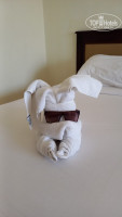 По моей просьбе дали номер на втором этаже. Он находится в главном корпусе около лобби. Номер 2242 находится с видом на заброшенный (или на реконструкции) отель. Поэтому у нас в номере всегда были тишина и спокойствие. До пляжа отсюда далековато, но выручал гольфкар, зато ресторан и бассейн под боком. Мебель не новая, но такая добротная, сделана из дерева. Сантехника, фен, ТВ и кондиционер работали без нареканий. Также в шкафу находится бесплатный сейф. В номере довольно чисто, белье белое, не застиранное, есть теплые одеялки, чтобы спать под кондиционером, а вот подушки оставляют желать лучшего, не очень удобные для меня. Белье меняли несколько раз, всегда хорошо мыли пол и убирали мусор, а также пополняли комплект гигиенических принадлежностей и 2 бутылки 0,5л питьевой воды. В этот комплект входят мыло, шампунь, гель для душа и лосьон для тела. Мне не хватило кондиционера для волос, наш привезенный с собой закончился, покупать в оставшиеся пару дней не хотелось, мог бы выручить маленький флакончик, но его не было, к сожалению... За уборку мы оставляли 1 доллар и всегда нам за это крутили фигурки из полотенец. Один раз доллар не оставила, у нас в номере убрались, но уже без фигурки. В номере есть чайник с набором для чая или кофе. У нас был довольно большой балкон, и главное, что в нем есть – это сушилка для вещей. В такую жару у меня все высыхало за пару-тройку часов.