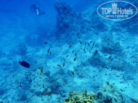Риф хороший, живой, есть очень красивые кочки с мелкими , цветными рыбками, но местами есть уже серые кораллы. В наш отдых мы видели черепаху, проплывет примерно в 15-16 часа, примерно в тоже время каждый день курсирует вдоль берега скат-орляк, мурена. Утром приплывает наполеон, добродушный, ручной. Мы кормили его целым яйцом, он сам видит его в руке и плывет к нам что б взять, нас местный научил как правильно его отдать и не поранится об его зубы, все таки он хищный. К нашему отъезду наполеонов стало уже два приплывать. Много крылаток, есть барракуды (это для тех кто боится, что б были подготовлены). Плавать можно влево от понтона до конца пляжа, даже за буйки заплыть, буйки огорожены ближе, чем кончается пляж. Вправо можно плыть гораздо дальше, после буйков, заброшенный отель, можно даже и за него плыть, но лучше ближе к кораллам, т.к. курсируют лодки и яхты. Да, барракуды как раз в той части моря, ближе к заброшенному отелю.