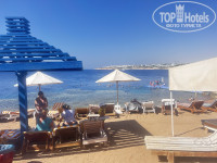 Пляж каскадный, кажется небольшим, но реально мест хватает всем. Да, есть места, которые занимаются очень рано, обычно это делают те любители лечь ближе к чему-нибудь (входу к морю, анимации, бару и тп. Лежаки старые, деревянные, но функционируют хорошо, нареканий не было. Вход в море по понтону, он один и пластиковый. Понтон явно требует обновления. На понтоне всегда сидит бичбой, спуск в море по двум лестницам, в принципе нормально зайти можно, иногда бывает толкучка, но некритично. Есть лагуна для тех кто не хочет смотреть кораллы или не умеет плавать. На пляже один минус: чтобы омыться после моря надо подняться на 3 уровень, там есть душ (две стойки по 4 душа), но, к большому сожалению, на пляже нет омывалок для ног, вообще нигде, только вышеуказанный душ. Неудобно. Кстати, туалет находится там же, около душа.