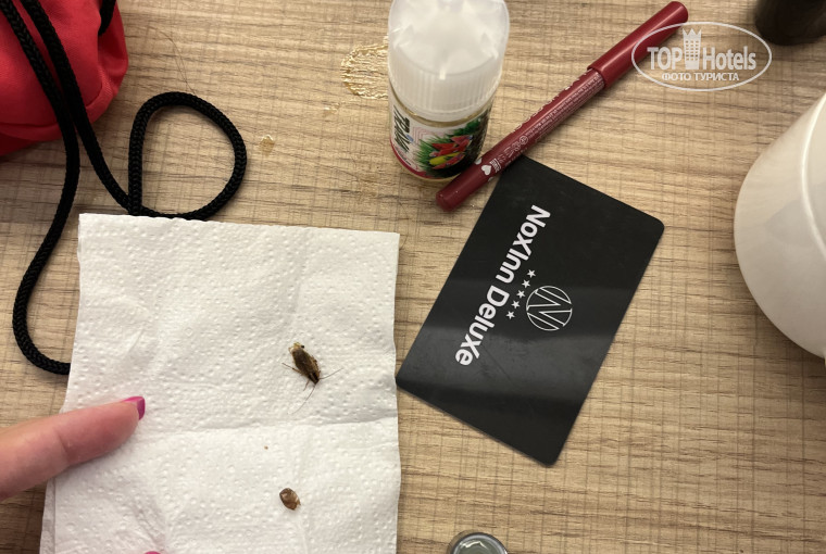 Дабы не портить себе отдых, мы коллективно решили отпустить данную ситуацию и попытаться найти плюсы. Увы, на 4 день отдыха нас ждал новый сюрприз. И это - тараканы. Первых мы заметили в туалете на полу, далее мы увидели большую самку с яйцом в прикроватной зоне. Мы снова пошли спокойно решать данный конфликт на ресепшен. Сотрудник был совершенно не удивлён и даже посмеялся. В качестве решения данного нонсенса, он вызвал уборщицу, которая в свою очередь просто пришла, посмотрела и вынесла мусор, в котором были исключительно пустые пластиковые бутылки.