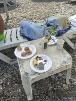 Пляж галечный грязный, окурки, трубочки, стаканчики, трупы птиц, валяется повсюду, шезлонги пластиковые, большая часть сломаны, матрасики которые предназначены для лежаков, рваные, грязные…