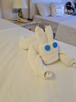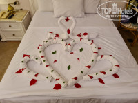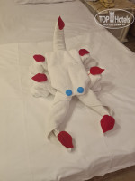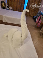 Приехали в отель примерно в 21-30. На ресепшн попросили подождать пол часа до заселения, предложили поужинать, хотя ужин уже закончился, нам накрыли, принесли несколько блюд, приятно. Далее заселение, носильщик помог донести багаж и показал номер, сказал очень хороший номер 1717. Дал ему доллар, он говорит мало, дай 2 🙂дал 2. Рассмотрели номер, качество ремонта ужасное, мебель древняя покрашена краской, двери с трудом закрываются и открываются, в ванной отделка вообще кошмар, все течёт везде, после душа вода на всё помещение разливается. Грязь ужасная, как будто несколько лет не убирались. Вещи даже не стали вешать в шкаф и раскладывать по полкам, чтобы не испачкать. Из средств гигиены только один шампунь и кусочек мыла. Вид на парковку, помойку какую-то и справа немного моря. Кондиционер работал хорошо. Сначала были в шоке от номера, но пообщались с другими отдыхающими и поняли, что большинство номеров такие же или хуже ещё. Некоторые по 3-4 разных номера смотрели и всё как у нас или хуже. Менять не стали, доплачивать не хотели. На следующий день пришёл уборщик, прекрасный человек Hamadah, который привел номер в порядок. Хочу особенно поблагодарить этого мужчину, каждый день делал разные фигуры из полотенец (за 10 дней ни разу не повторялись), на любые просьбы быстро реагировал, приветливый и отзывчивый. Всё делал независимо от наличия чаевых, иногда оставляли, иногда нет. Теперь у нас всегда был полный комплект средств гигиены, достаточно воды и в номере более-менее чисто. Спасибо, Hamadah! Пляж очень понравился, удобный песчаный вход в море, чуть дальше от берега небольшие коралловые рифы, много красивых рыбок. Море очень чистое красивое! Шезлонгов иногда не хватало, матрасов тоже. Шезлонги деревянные, жёсткие, работники на пляже отдельно приносили матрасы. Есть небольшой пирс. Есть неплохие водные горки. В барах пиво нормальное. Рядом с пляжем пиво иногда заканчивалось😳. После 12 ночи весь акоголь, в том числе пиво, платно. Крепкий алкоголь не очень. Питание средне, особого разнообразия нет, на гриле иногда вкусно, иногда угольки просто. Всё скромно, но голодными не останитесь, всегда можно что-то найти. Официанты молодцы, работают старательно. Говорят отель после реновации??? Странно, всё старое и убитое. Грязь везде, ободраные здания, что-то подкрасили, подмазали и всё. Половина корпусов не достроена или заброшена. Больше половины отдыхающих местные арабы, поведение плохое: что такое очередь они не знают, дети бегают по столам в ресторане, курят везде (даже в лифтах) и т.д. Анимация ненавязчивая, вечером какие то танцы постоянно, местный фольклор, скучно. Музыка хреновая, звук хреновый. Никакой живой музыки, дискотек и т.д. Вай фай в отеле просто нет, работает только на ресепшн и только переписываться в мессенджерах. Ни в какие приложения или на сайты зайти невозможно. При выселении в 12-00 срезают браслет. После этого можно под залог паспорта взять полотенца, и сходить на обед. На ужин нам запретили ходить, хотя выезжали из отеля в 19-30. Мы решили всё-таки зайти, немного перекусить. Выждав немного, пока что-то съедим, прибежал администратор, устроил разборки. Продолжились разборки на ресепшн, требовали оплатить сначала 16 потом 25 долларов за ужин. После звонка гида с угрозами того что не выпустим из отеля, не пустим в автобус, решили заплатить. Просто денег уже не 