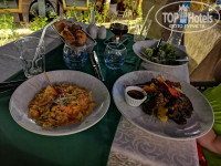 Еда в отеле изумительная! Огромный ассортимент блюд, эстетичная подача и великолепный вкус. Каждый вечер проводится тематический ужин: например, египетской, мексиканской, азиатской, итальянской кухни, рыбный вечер, романтический вечер и т. п. А если хочется разнообразия и индивидуального обслуживания, к вашим услугам 4 бесплатных ресторана аля-карт, работающие по предварительному бронированию (количество бронирований не ограничено!), и ещё платный рыбный ресторан. Мы посетили все 4 ресторана аля-карт, некоторые по два раза. В азиатском ресторане рекомендуем говядину по-сычуаньски, подача -- огонь 🔥