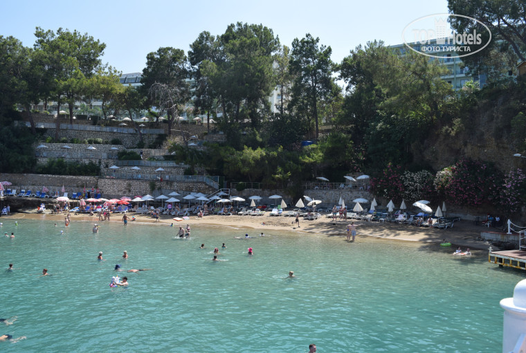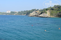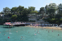 Пляж: Главный козырь этого отеля! Он большой и не обычный с уютной бухтой и бетонной платформой на возвышенности. Спускаясь к пляжу по винтовой лестнице и уже любуясь панорамным видом и морским воздухом попадаете на песочный пляж с красивыми цветами растущими на горе и с большим выбором лежаков которые можно занять в любое время. Люди с соседнего отеля периодически хотят занять наши места, так как у них все занято в связи с малым пляжем но их корректно возвращают назад. Туалет с душем в шаговой доступности на платформе , рядом бар с не плохим пивом и вкусными бараньими котлетами. С права от пляжа можно поплыть к скалам и забраться на верх и полюбоваться видами или обойти отель на лево возле дороги и сделать прекрасные панорамные фото. С лева к концу платформы тоже можно расположиться на лежаках и спускаясь с лестницы в море можно увидеть
