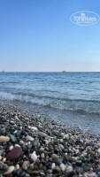 Имеется отдельная зона на пляже,есть шезлонги (хоть их и не большое количество, но место можно найти всегда), мы ходили чуть дальше и ложились прям на камешки, там поменьше народа, пляж чистый, море было просто шикарным и чистым ,в любое время это парное молоко.
