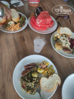Отель предлагает разнообразные блюда на завтрак и ужин.Все было очень вкусно и свежо.Каждый день можно было попробовать что-то новое! Каждый день давали рыбу ,овощи на мангале , много свежих и разнообразных салатиков , где-то 5 видов сыров , разные соусы , джемы , картошку фри , по деревенски , рис , луковые кольца, наггетсы , курицу , шашлык , лепешки , супы , кашу , разные виды пирожных от 5 до 8,халва ,печенье, из фруктов ( арбуз ,сливы, зелёные мандарины , виноград, яблоки ) по питанию это просто вау !!!!