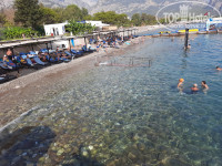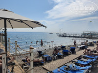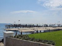 Значительно улучшили зону пляжа и пирса. Увеличилось количество лежаков. Вход в море очень крупная галька. Не помешают аквашузы. Для удобства сделаны спуски в воду, что отдыхающие с детьми оценят.