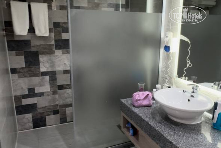 НОМЕР находился в предпоследнем корпусе справа (№ 2356), на третьем этаже, недалеко от пляжа и водных горок. Балкон выходит на внутренний дворик и горки. К номеру претензий не было. Мебель в хорошем состоянии, кондиционер и сейф работали. Немного смущало только отсутствие двери в душ (не знаю как по другому это объяснить, добавлю фото). Воду (спрайт, колу) регулярно пополняли. Чайник работал. Небольшой минус – отсутствие бра возле кровати (хотя на фотографиях на сайте отеля они присутствуют). К уборке номера у меня претензий нет: периодически крутили лебедей и т.п. Телевизор работал, розетки все в рабочем состоянии и их не две на весь номер. Но я всегда беру с собой сетевой фильтр (удлинитель). Территория ухоженная, красивая, аккуратная, все чистят и убирают. Да, были комары, но мы были подготовленные и брали с собой фумигатор, а ещё у нас были спиральки, которые мы использовали, когда сидели на балконе вечером. Wi-Fi на территории отеля неплохой. До главных ресторанов нужно было идти около 8 минут не самым медленным шагом. Специально ставила тренировку – получилось 550 м.