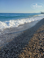До пляжа идти легким шагом минут 7-10. Это так полезно после плотного завтрака или обеда! На пляже есть лежаки, но нужно успеть их вовремя занять. Море теплое, чистое. Пляж тоже чистый.