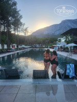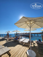 ПЛЯЖ И БАССЕЙНЫ: Пляж лучший на побережье! Вода прозрачная как слеза, под водой видны останки древнего города, плавают рыбки, можно плавать с маской. Первая линия. Это единственный отель, в котором сразу ТРИ!!! пирса. Два пирса общего пользования, один пирс с габанами (платные по 100 у.е. в день). Бесплатные пирсы оборудованы шезлонгами, душами, лестницами для спуска в море, постами спасателей. На платном пирсе приватные павильоны с шезлонгами над водой, собственным баром, кафе, обслуживанием. Никогда не пустовали! Сам пляж песчано-галечный. Ближе к воде с зонтами, за ними под общими навесами уже зона с насыпным просеянным песком, очень свободно, полно свободных мест даже в пиковую нагрузку отеля. Далее основной бассейн, где все активности, аниматоры, музыка, большой бар. Красота, одним словом. У бассейнов основной народ появляется после обеда. До обеда здесь пустовато. Основной бассейн условно разделён на несколько частей, есть лягушатник для малышей в стороне, никому не мешает. Отдельный бассейн с аквапарком вообще в стороне, ближе к детскому клубу. Собственно там аквапарк для самых маленьких и постарше. И в отеле ещё 2 шикарных релакс-бассейна. Они никак особо не обозначены как релакс, но там всегда тишина, спокойствие и умиротворение среди сосен и прекрасного вида на горы. Бассейны современные, красивые малахитового оттенка, обшитые деревом, после обеда мы здесь спали) У бассейнов тоже душевые. По всей территории туалеты, чистота хирургическая в них, запах нейтрализуется специальными аппаратами, всё автоматизировано: мыло, санитайзеры, полотенца...