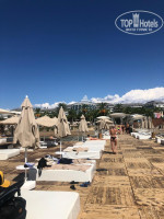 Пляж замечательный ,но не особо чистый песок,не убирают особо .Лежаки хорошие .Полотенца хитро придумали ,выдают до определенного времени и принимают только с 16.00 ,в общем не получится мокрое потонете сдать и сухое к вечеру получить