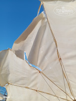 Пляж - это отдельная тема (приложила фото зонтов). Если отель просит ремонта и дело это дорогое и долгое, то купить новые лежаки, матрасы и зонты ничего не стоит. Половина лежаков поломанные, матрасы старые, протёртые, зонты дырявые. От дуновения ветра они или вылетали из стойки и улетали, либо со стойкой падали на отдыхающих. Когда с набережной смотришь на пляж, то такое чувство, что наш пляж, это склад хлама. Настолько бомжацкий вид.. Почему отелю не стыдно? Некоторые туристы за два евро бронировали лежаки соседних отелей, что бы отдыхать по человечески.
