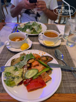 На завтрак всегда овсянка, яйца готовят в 6 вариациях: омлет, глазунья, отварные и т.д. Хумус, булочки разные, картофельный наггетсы. Арбуз, дыня, ананас, апельсины. На ужин рыба/курица/говядина/ягненок. Всегда суп! Один раз даже давали русскую уху. Морепродукты были пару раз: креветки, мидии, кальмары, красная рыба. Паста болоньезе очень вкусная, подобие русских голубцов. Шампиньоны, хумус всегда, салат цезарь и т.д. Сырная тарелка: дорблю, маасдам, виноград, орехи. Долго перечислять, но все безумно вкусно!!!!! Так наедались, что ни разу в кафешки не заходили даже.