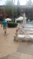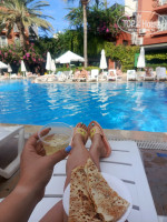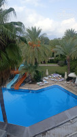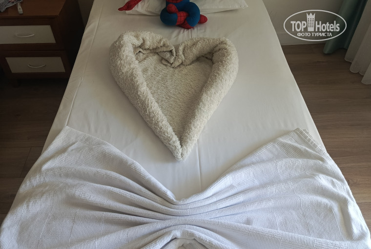Нам очень понравился отдых в данном отеле, отдыхали семьей с ребенком, обслуживание и еда на 5, отель веселый, по вечерам дискотеки и караоке, возят бесплатно в клуб, который недалеко расположен, с алкоголем проблем нет, за исключением того, что самый крепкий алко, это виски, джин и ром (это ликер миндальный, апельсиновый и персиковый 15%) вечером в ресторане можно взять чистый раки, так же с утра до вечера на баре есть пиво и вино белое и красное, пиво и вино вполне себе приличное, не разбавленное, но даже этим разнообразием алкогольных напитков люди все были веселые, много русских, обстановка уютная, в номерах каждый день были шедевры от уборщицы, за что каждый день оставляли ей с превеликим удовольствием чаевые) официанты и работники ресепшена приветливые и доброжелательные, всегда откликались на любую просьбу, даже принесли целый запакованный комплект белья для ребенка, вместо пледа, тк на 3 этаже, где проходила вечеринка поднялся сильный ветер, разнообразие еды хорошее, голодным не останешься, еду докладывают, единственное что с гриля (мясо, рыбу, куриные шашлычки на шпажках) были в ограниченном количестве и их надо успеть взять к началу ужина, их потом не докладывают, но в это время довольно сложно найти свободный столик, десертов очень много, все вкусные, анимации для детей нет совсем, может потому что октябрь, горки в бассейне работают, но сам бассейн достаточно холодный, территория шикарная, ухоженная и большая, много растительности и деревьев, номера хорошие, в корпусе А и В шумно, в корпусе С и Д тихо и уютно, красивый вид на горы и бассейн, до моря очень близко, но пляж городской, на котором конечно никогда нет шезлонгов и в принципе негде сесть, пляж галечный, мы на него не ходили, ходили на дикий пляж подальше, там очень красиво, чисто и народу почти нет, тоже галька, но более комфортная, отель расположен в самом центре Кемера, где есть все, что пожелаешь в шаговой доступности, по четвергам приезжает рынок, в целом достойно, рекомендуем) Фото и видео на сайте полностью соответствуют) С WiFi проблем не было, в лобби отеля всегда есть, в номер и на территории отеля тоже можно подключить за отдельную плату или в качестве извинений)