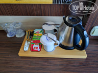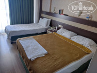 Самый обычный простецкий номер. Небольшой. Двуспальная кровать и односпальная. Телик, кондей, в ванне фен, душевая кабинка. Чайник, растворимый кофе, чай, вода, минералка. Удобно, что ключ от номера магнитный на браслете. Один раз ключ сломался. Пришлось бегать несколько раз перемагничивать на респешн. Только после двух неудачных попыток дали мастера, который замок починил. Очень неудобный шкаф. Чемоданы туда не влезли.