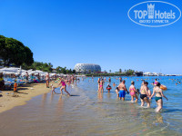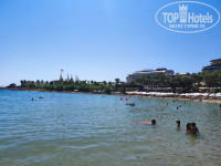 Пляж. Вот тут нет слов. Само море просто отличное. Для детей супер. Но пляж. Анапа отдыхает. все лежат друг у друга на голове. Найти свободный лежак проблемно, т.к. некоторые "любители" занимают лежаки полотенцами чуть ли не 7 утра и уходят. Периодически бегают "бич-бои" и убирают эти полотенца. Но в целом это не особо помогает. На пляже нет пляжных столиков, т.к. их просто некуда ставить. Огромный минус, что на пляже только зонтики, от которых толку ноль. Почему не сделан навес от солнца? Опять же минус, что на пляж с едой нельзя. Мы весь отпуск протусили на пляже в районе сцены. Не понравилось, что до гезлеме далеко, в кафешке недалеко от сцены только фаст фуд. У Лонисеры Премиум пляж свой, выходит на другую сторону полуострова. Очень плохой пляж. Грязный, с камнями и галькой. Поэтому отдыхающие из Премиума тусят на пляже Лонисеры Волд и Резорт.