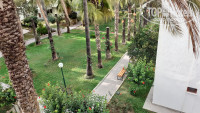 Территория в Гардене шикарная конечно, зелень, цветы, пальмы. Садовникам высший балл за такую красоту. Вечером подсветка красивая. Я на своём балконе свет включала, романтика сплошная. На пляж ходили по тоннелю, по этому же тоннелю ходили в хамам, погреться в сауне и полотенца поменять. Сам хамам, кстати, тоже неплохой. Я брала без массажа, пилинг, пена, маска, чай, как обычно. Пляж, конечно, шикарный, просторный, лежаки не впритык, заход хороший. Мы прознали, когда в соседнем отеле зарядка в море и аквааэробика, подплывали к ним, занимались. Я вообще не любитель анимации, но было весело. Бывало лень идти на обед в ресторан, ели в пляжном баре. Овощи там были, бургеры, спагетти, выпечки пара видов, нам нравилось. В общем, пляж чистый, просторный и удобный.