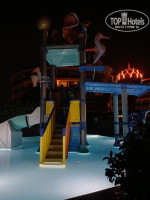 На территорию отеля мы выходили пару раз - после дождика вечером и раз в хорошую погоду. Она небольшая, там находится снэк-бар (закрыт на зимнее время), детская площадка, горки, бассейн, амфитеатр. На территории растут лимоны.