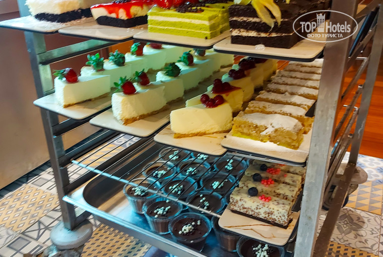 В отель есть замечательная кондитерская, которая открывается в 10.30. Тут бариста варит вкусный кофе (настоящий зерновой кофе), так же можно сделать фраппе с мороженым. И только в этой кондитерской есть очень вкусные чизкейки и другие пирожные, макарунс и другие сладости.