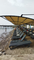 Пляж узкий, лежаки под тентами, почти в воде. Но когда мы уезжали, пляж чистил трактор от камней. Заход в море плохой, я только в коралках ходила. Море шикарное!