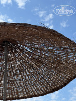 На пляже выход к морю - плита, она в самом деле мешает, все ее обходят и поэтому куча народа в одной точке. Сам пляж убирают неохотно, бокалы и стакану могут стоять на столике возле лежаков по 3-4 часа. Зонтики маленькие и с большими дырками ибо они из веток для красоты, нормально не спрятаться от солнца, если захочешь.