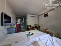 что это самый дешёвый вариант. По приезду нас сразу же заселили вообще номер, у нас был супериор. Но нам сделали апгрейд и заселили нас в бунгало. По началу нам это не понравилось, потому что там как-то мрачновато, и мы боялись, что будет очень шумно по ночам, если кто-то будет тусить у бассейна. Но в итоге номер решили не менять, потому что номера бунгало немножечко побольше, они по просторнее, в них есть дополнительно 2 стула и столик, макияжный столик со светильниками, холодильник. В номере 2 большие кровати. Когда мы жили, были ещё очень старые матрасы, но прямо при нас, как мы поняли была замена матрасов - постоянно, мы видели, что старые, с пятнами выносили и заносили новые, чистенькие, беленькие, но мы уже остались на старых. Подушки, конечно, каменные. На них не очень удобно. Отдельно надо сказать о санузле, он без душевой кабины, без ванны. Душевая лейка прямо возле унитаза, но мы быстро привыкли. Кондиционер в номере работал исправно. Телевизор не работал вообще. О чистоте в номере. Убираются каждый день, но по запросу. Нужно вешать табличку на дверь, чтобы вам убрали. Если вы её повесите, то уборку произведут. Единственный момент, что полотенца чистые нужно ходить самим получать на ресепшн, так же, как и туалетную бумагу и мыло с шампунем. Почему-то нам это всё не меняли. Постельное бельё за 10 дней сменили 2 раза. Полотенца, постельное, конечно, старенькие. В номерах все уставшее, старое, первое время это нам не нравилось, но через пару дней на это перестаёшь обращать внимание.