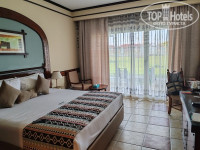 К 13 часам пошли в отель, нас заселили в два стандарта со смежной дверью, все как бронировали, без доплат. Номера 1045 и 1046, на первом этаже, с выходом на лужайку и видом на забор. Оба двухместные. Один с большой кроватью, второй в двумя односпальными. Дополнительного спального места для ребенка нам так и не предоставили, два дня выпрашивали на ресепшен.