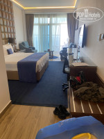 Номер большой и чистый , все номера в 5+ выходят на море ,очень красиво. Все стандартно в номере но есть конечно свои но. Например 2 дня говорилт что течет вода из бочка на пол. Если хочешь полежать в ванной то гель который прикреплен в душе - его не достать. Убирали или заправляли постель каждый день и воду ставили и всёёёё - но полы и пыль не трогали .