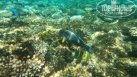 По пляжу: он довольно не обычный - есть куча пандусов с кучей лестниц и переходов расположенных на скале - достаточно интересно, но немного запутанно. В принципе лежаки всегда можно было найти. Есть небольшое место, возле правого причала, где можно помочить ноги или побыть с маленькими детьми. На причале почти всегда есть свободные лежаки, потому что там всегда ветрено. В море красота - риф очень красивый - рыбок море. Два высоких причала, на каждом дежурит спасатель. С причалов можно прыгать.