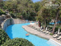 Территория отеля огромная, очень зеленая и ухоженная, красота везде, гулять одно удовольствие, на территории вилл растут огромные сосны, воздух чистейший! За территорию 10 баллов из 5! Бассейнов много, есть инфинити, есть 16+, там свой бар и очень тихо. Аквапарк не плохой, но работали не все горки. Очень понравилась ленивая река с крутыми спусками, довольно увлекательно! Вода в бассейнах в конце мая довольно холодная, предпочитала купаться в море!