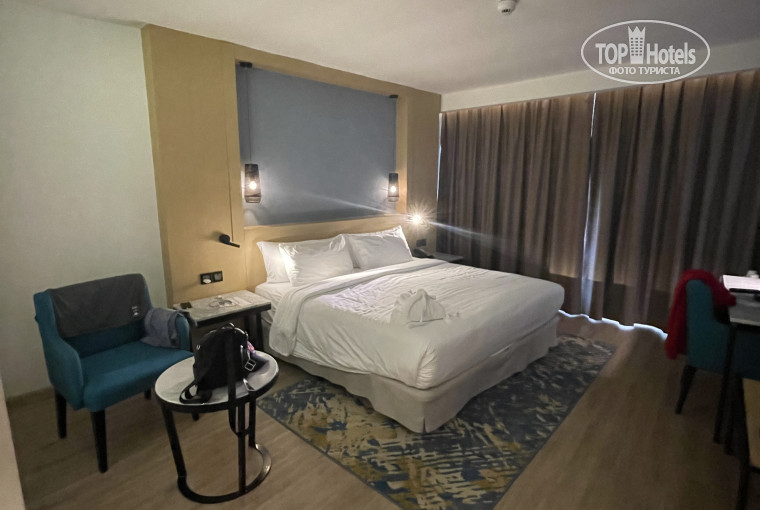 —НОМЕРА. Наш номер 332, третий этаж, сразу около лифта. Скажу сразу уборка каждый день! Всегда меняли постельное, полетенца, халат и тапочки по запросу. Отличный номер, с запахом чистого белья и чистоты в целом! Большая удобная кровать, белоснежное постельное белье, удобный матрас, 4подушки. Современная душевая комната. Был набор полотенец 5 шт, два халата и тапочки, зубные щетки, паста, станок бритвенный, мочалка небольшая (и еще что-то уже не помню). Есть шампунь и гель для душа, мыло для рук и лосьон для тела. Фен есть, но я бы взяла свой всё таки лучше. Работают российские каналы. Есть чайник, чай, кофе, кружки и стаканы. Ежедневно пополнялся мини бар (шоколад,сок,газировка,вода). Номера с видом на город шумные, дорога прям под окнами и может попасться номер с видом в забор.