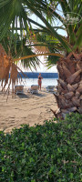 Пляж песочный, вход в море комфортный. Волн нет, т.к. волнорезы. С насыпи наблюдали за черепашками, их много с обоих сторон. Лежаков не хватало. Когда отель не весь заполнен, было свободно. Потом в 8 утра лежаки все заняты. 2 дня в море был то ли мазут, то ли нефть, пятки были черные. Отмывали маслом.