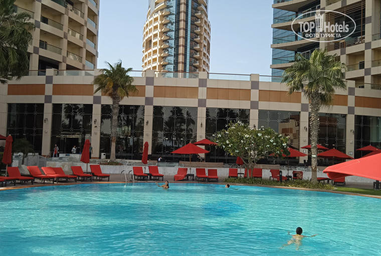 В наш отель приехали в 9 утра. Нам предложили заплатить за 4 человек 90 долларов за раннее заселение и завтрак. После завтрака нам выдали карточки от забронированного семейного номера с кухней и балконом на 11 этаже (1124). Сотрудник отеля помог нам поднять вещи на лифте и показал наш номер. Номер расположен близко к лифту, выходит балконом на северо-восток, что давало прохладу после обеда. Номер в хорошем состоянии, всё приборы и сантехника рабочие. Попросили сотрудника принести необходимое количество посуды, бокалов и приборов для кухни, недостающие халаты и тапочки. Через 30 минут всё принесли. В номере одна двуспальная и две односпальные кровати, кухня с холодильником, микроволновкой, чайник, вода в бутылках, набор для чая-кофе, одна ванная комната, 2 туалета. Особенность душа - жёстко закреплён на стене. Есть несколько розеток под евровилки, дополнительно на ресепшене взяли 2 универсальных переходника. У сотрудников клининга можно просить дополнительное количество воды, чай-кофе, сахар, полотенца, дают без вопросов. Персонал в отеле доброжелательный, отзывчивый, стараются всем помочь, всё делают с улыбкой. На ресепшене и в ресторане есть русскоговорящие сотрудники. С балкона номера прекрасно видно отель Rixos Marina, Marina Moll, отель Emirates Place Mandarin Oriental, частично видно ресторан Kamoon и море. На балконе столик и два кресла. Сушилки для одежды нет. Wi-Fi устойчиво работает в отеле и на пляже. Аудио звонки лучше проходят через Telegram.