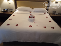 В мой день рождения, после обеда, когда нас не было в номере, сотрудники отеля украсили кровать лепестками цветов, фигуркой торта из полотенец, оставили на столике в номере тарелку свежих фруктов, мини тортик и поздравительную открытку. Принесли новый халат и новые тапочки. Было очень приятно. По просьбе туристов сотрудники отеля поздравляют именинников в ресторане.