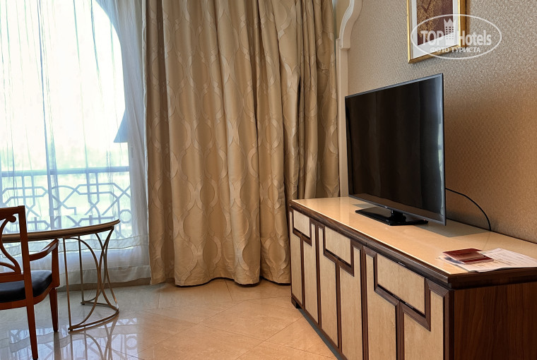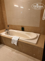 Номер delux. Большой. Заявлено 90 квадратов, но на самом деле меньше. В номере большой сан узел: ванна, душевая, туалетная комната, две раковины. Из принадлежностей шампунь, жидкое мыло, лосьоны, зубная щетка и паста, бритвенные принадлежности. Кухня. Из посуды чайник, две кружки и два бокала. Большой зал и спальня. Тапочки дают. Один ребенок спал с нами на кровати. Для второго дали дополнительные постельные принадлежности и ребенок спал на диване (не раскладывается). Много шкафов, куда можно положить одежду. Нет балкона. Одежда сохла очень долго. В сан узле плохо работал сливной бочок. Сказала об этом уборщице, толку ноль. Нет детских подставок. Пришлось с комнаты поставить стул, чтобы дети могли дотянуться до раковины.