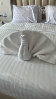 Our short vacation at the Sunrise Remal resort 5* is coming to an end. This is a new small hotel on the Red Sea coast. There is a promenade along the hotel, which is nice for leisurely walks in the evening, and in the morning, joggers can go jogging. This hotel is notable for its pontoon and equipped descents into the sea. The pontoon is small, and there are several descents into the water. For diving enthusiasts, there is a special low platform. The food is wonderful, consistent with 5*. For lunch and dinner, seafood - grilled crabs and shrimps. A large selection of vegetables and various greens. I would especially like to note the work of the Posh club. This is a separate building with beautiful rooms, a separate restaurant and a separate beach with wonderful sofas and sun loungers. You can enjoy food and drinks around the clock. Ahmad El Gayar showed maximum professionalism and hospitality. He was always ready to answer any questions and solve any problems. It should be added that upon arrival in the room there were 5 (five!!!) bottles of different alcohol, fruits, sweets and three types of nuts. In the evening they brought a welcome chocolate dessert. In the Posh club restaurant you can order from the menu. I especially liked the tempura shrimp and Posh seafood. The salad bar, which was in the main restaurant (dill, parsley, arugula, mint, yellow and red peppers, lettuce leaves - a huge selection), was a little lacking. The week flew by. The weather was comfortable, although the water in the sea was cold and windy. But it is the beginning of April! We fly out tomorrow. Thanks to the whole Posh club team for a wonderful holiday!
