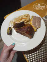 Гарниры: рис, запечённая картошка, пюре раз в неделю, овощи на пару, спаржа тушёная. Отдельно станция с пастой.